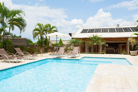Nosso cantinho conta com uma enorme piscina, sendo aquecida e com hidromassagem. Além disso desfrute de um lindo deck, mesas e cadeiras de sol...